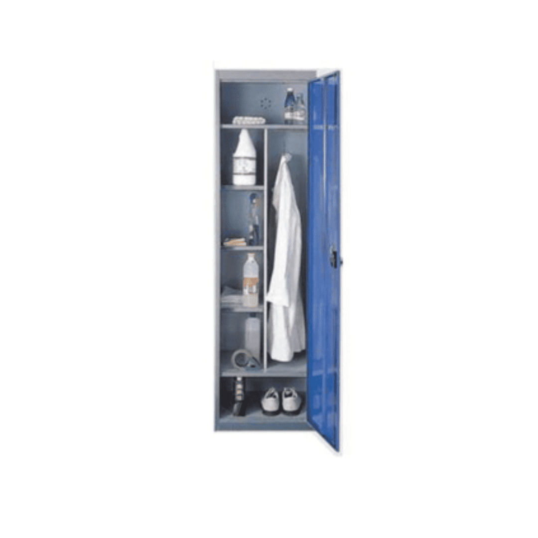 Armoire d’entretien monobloc en acier destinée au rangement sécurisé du matériel de nettoyage dans les bâtiments publics, écoles, mairies et locaux techniques.