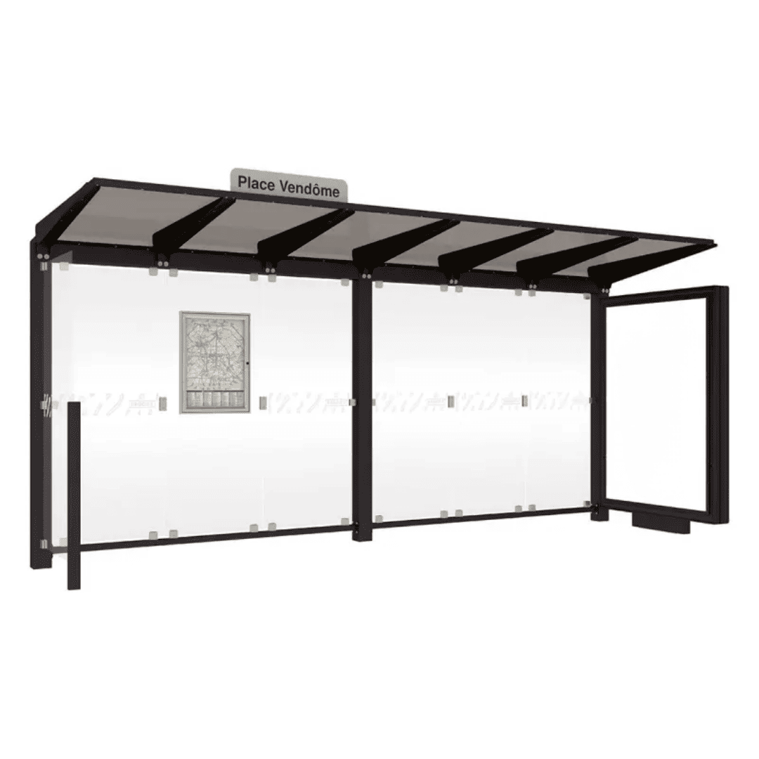 La station peut recevoir une vitrine horaire et une plaque d’arrêt.