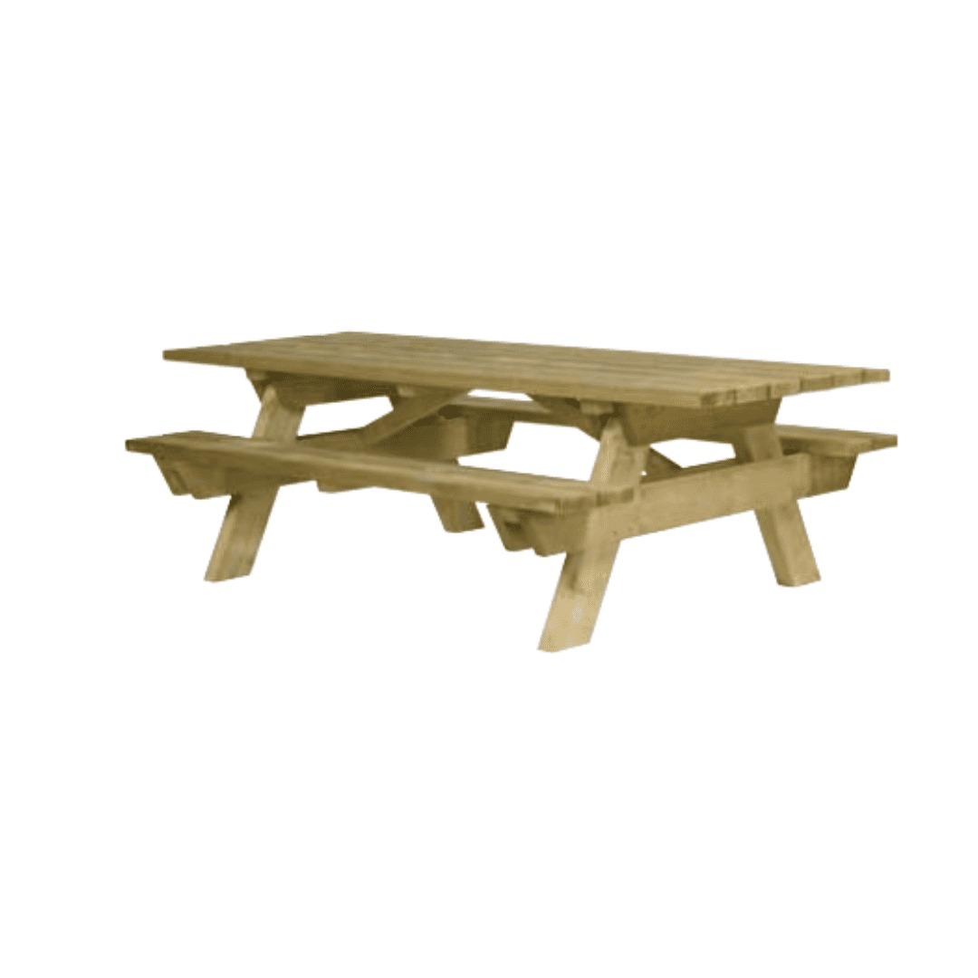 Table de pique-nique en bois conçue pour l’aménagement des espaces extérieurs des collectivités : parcs, aires de repos, cours d’école et zones de détente.